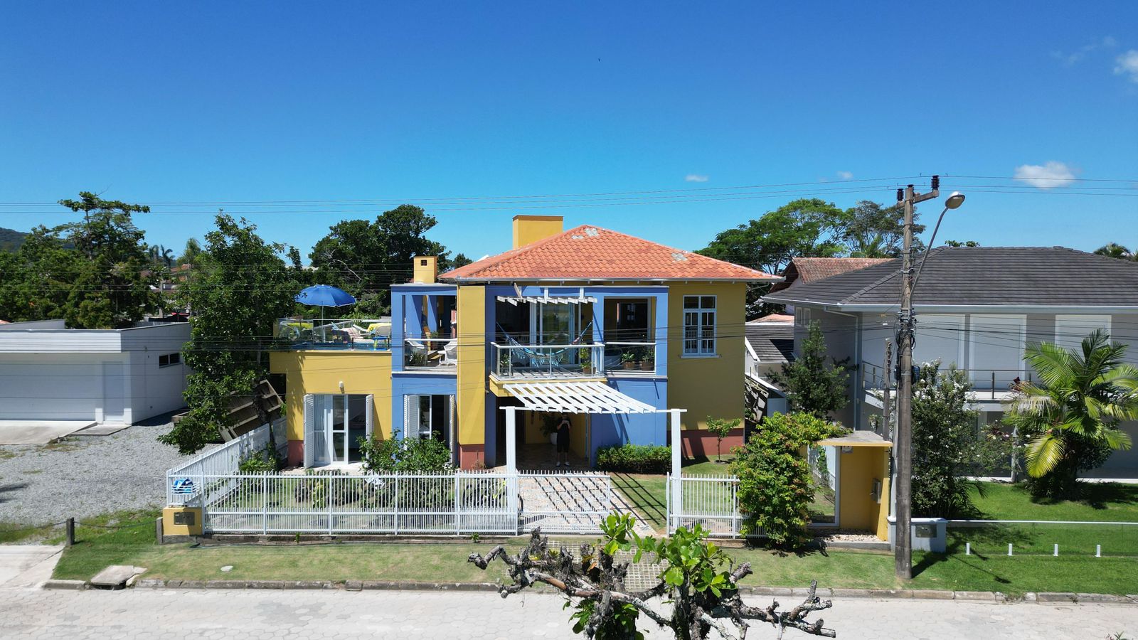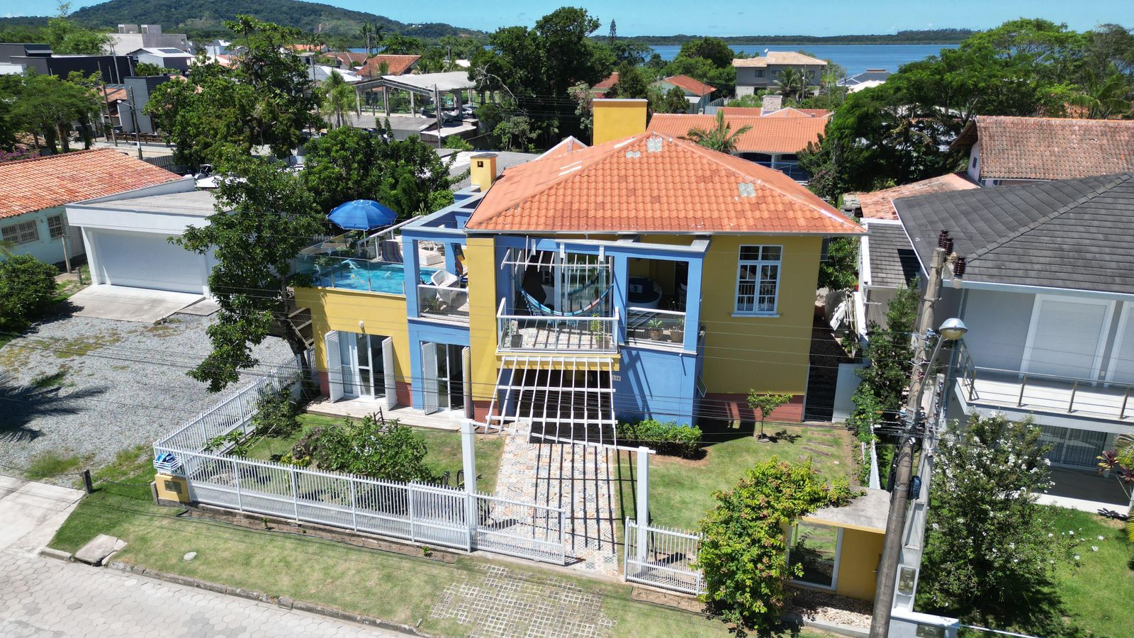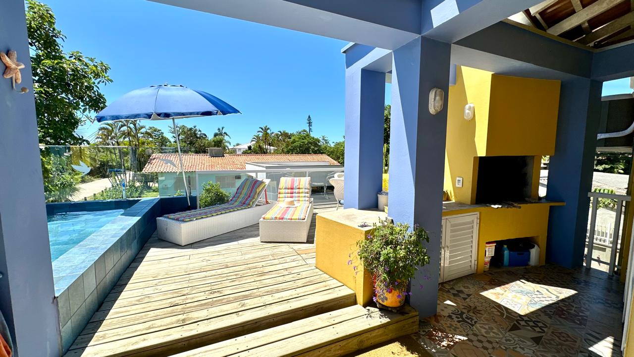 Um sobrado de frente para o mar na Praia do Capri, com uma das vistas mais lindas da cidade, super aconchegante e estilo praia, bem ventilado e com excelente iluminação natural, localizado na charmosa Rua Blandina Steiner Beckhauser, toda calçada, a poucos passos da ponte estaiada principal cartão postal e acesso a Praia do Capri, esse sobrado conta com 5 quartos, sendo uma suíte super confortável, banheiro social dividido em duas partes de chuveiro e sanitário, lavanderia, chuveiro e lindo jardim externo, despensa que pode ser transformada em banheiro, uma charmosa escada, já no segundo pavimento conta com cozinha, sala de estar e jantar, varanda tudo climatizado, além do deck com piscina e churrasqueira, tudo com uma belíssima vista do mar e do por do sol mais lindo da cidade.
