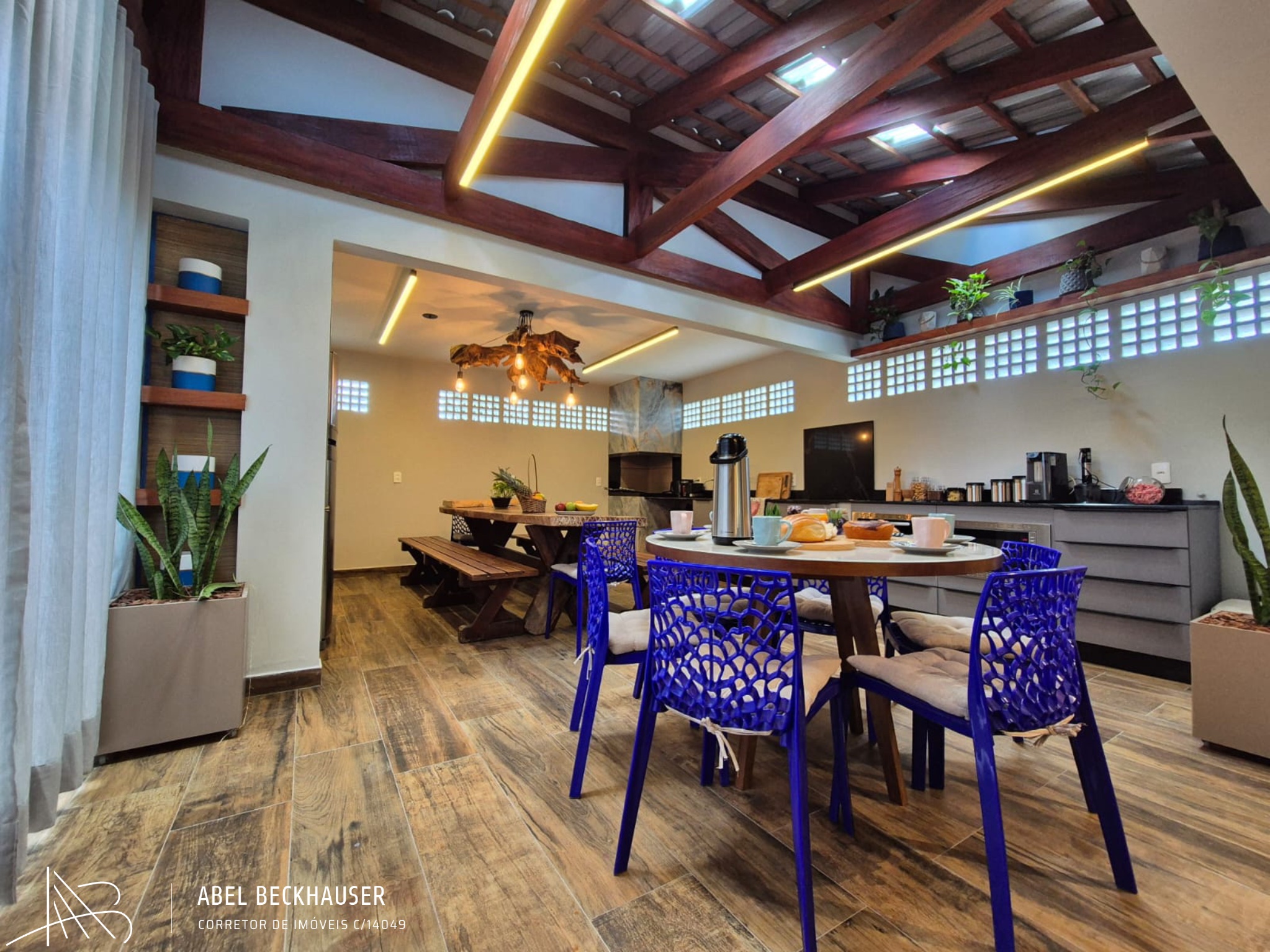 Sobrado a poucos metros da ponte de acesso à praia do Capri, Conta com 03 dormitórios, sendo 1 suíte, banheiro social pavimento superior, banheiro social no térreo e apoio para chegada de praia, amplo living com sala de TV, estar, cozinha e espaço gourmet com churrasqueira integrados. Na sua área externa conta com vaga para 02 veículos, depósito geral e para artigos de pescar, praia e afins, ducha chegada de praia, terraço para lazer.